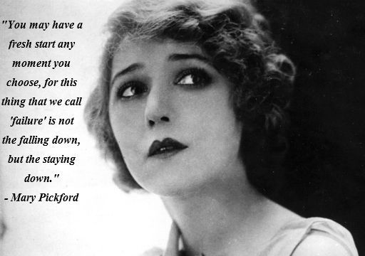 "You may have a fresh start any moment you choose, for this thing that we call 'failure' is not the falling down, but the staying down." - Mary Pickford
