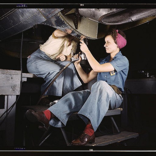 Seventy-two years ago, a pair of real-life Rosies assemble a bomber at the Douglas Aircraft Company in Long Beach, Calif.