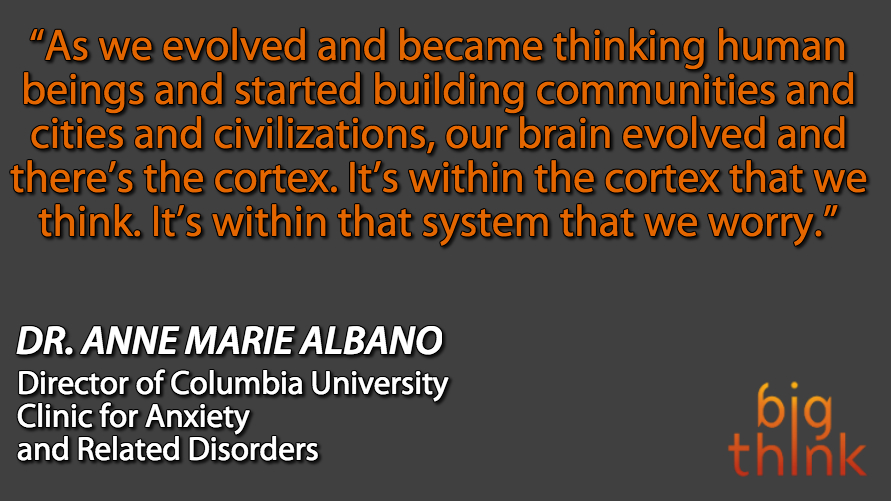 Dr. Anne Marie Albano, director of Columbia University’s Clinic for Anxiety and Related Disorders, says that anxiety is rooted in our biology. We know it’s a product of our biological evolution because worry and anxiety produce in us a fight-or-flight response.