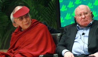 Famous bald men: Tenzin Gyatso, the 14th Dalai Lama of Tibet; and Mikhail Gorbachev, former leader of the Soviet Union.