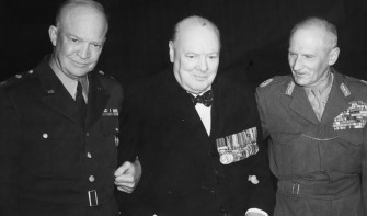 Famous bald men: President Dwight Eisenhower, Prime Minister Winston Churchill, and Viscount Bernard Montgomery
