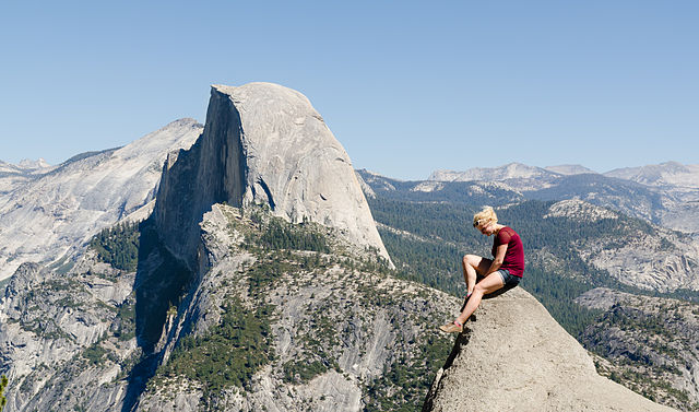 Outside of the Grand Canyon, perhaps no American vista stuns quite like the view from above California’s majestic Yosemite National Park. The woman above is posing at Glacier Point, a viewpoint about 2,200 m (7,215 ft) above the valley floor. That giant piece of granite in the distance is Yosemite’s famous Half Dome.