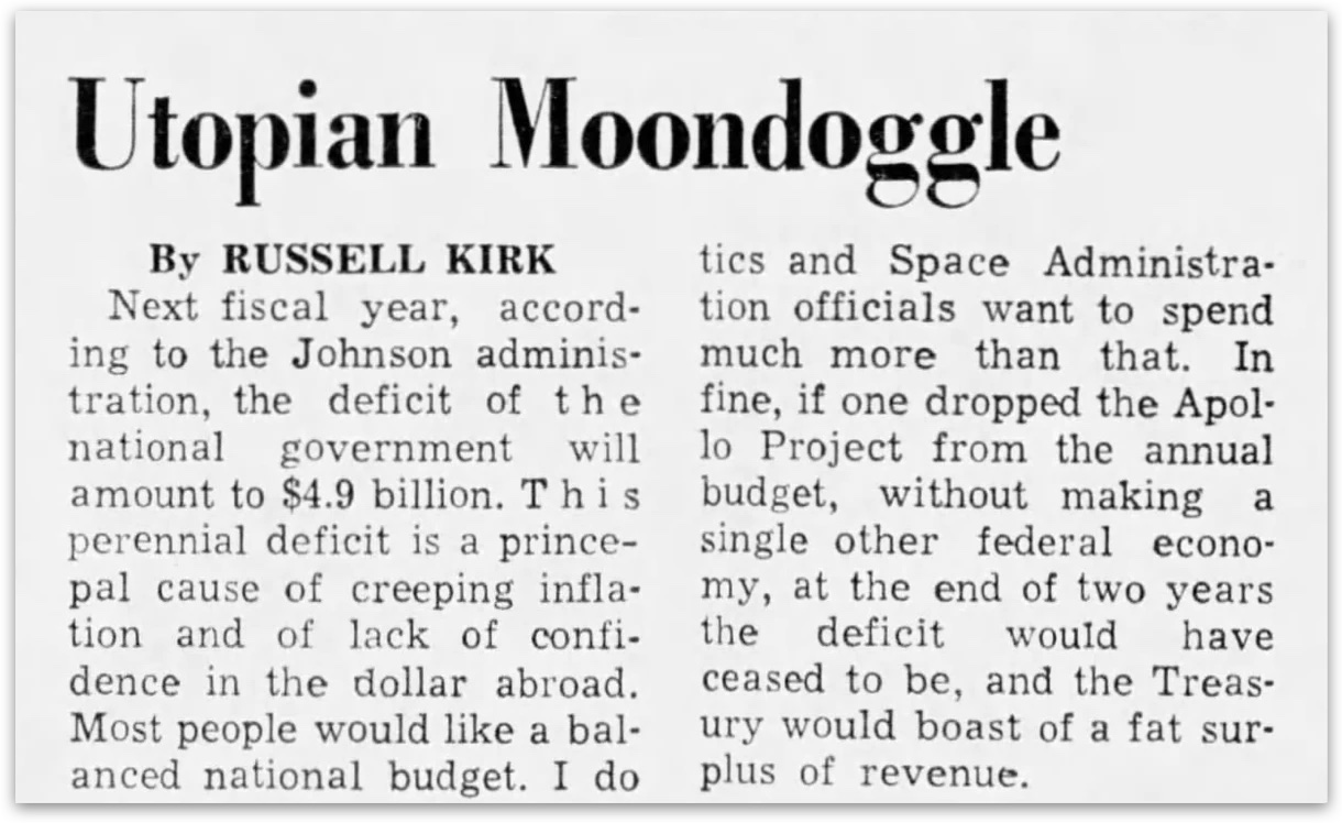 Many Americans and even astronomers opposed the plan for various reasons. Even former President Eisenhower (who created NASA) said: “Anybody who would spend $40 billion in a race to the moon for national prestige is nuts.” The term “moondoggle” was coined, and it stuck.