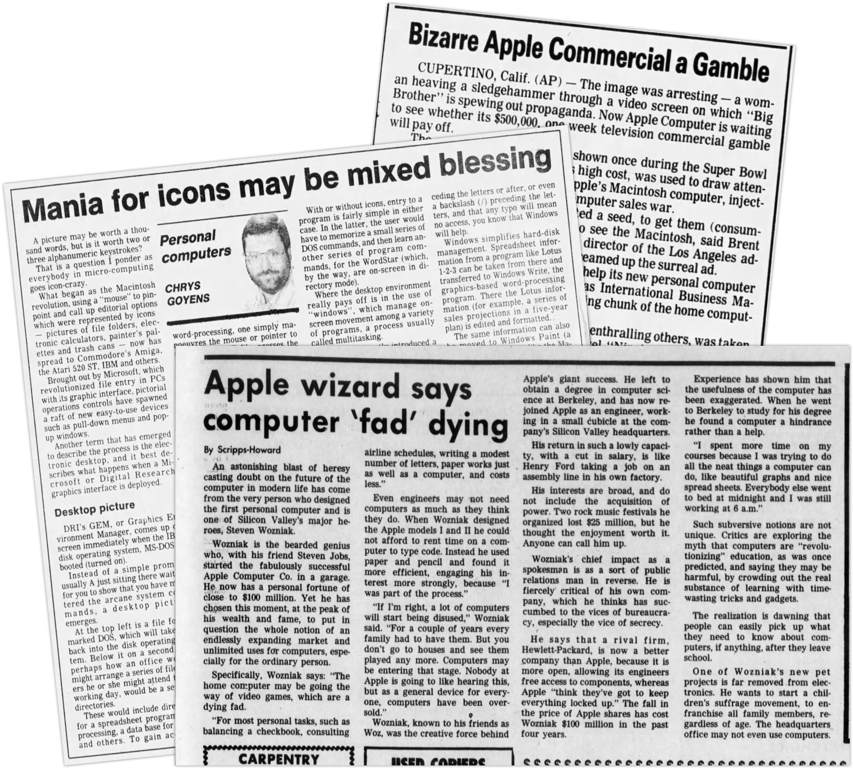 Some wondered if GUIs were more of an aesthetic leap than a functional one, such as Canadian writer Chrys Goyens, who said of word processing: “The graphic-interface gain is not quite that overwhelming.”
