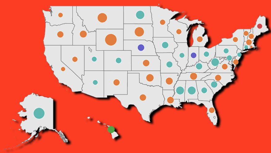 The leading states for each injury category