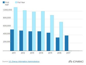 Coal was a cornerstone of Trump’s presidential campaign. He won nine out of ten states with the highest coal production in the country after promising to revive the industry and put thousands of unemployed coal miners back to work. But since his election, employment rates in the mining industry have remained mostly stagnant. The relatively cheap cost of natural gas seems to be the cause. And, incidentally, it’s this competition that could help the U.S. hit emissions goals set by the Obama administration—even without the Clean Power Plan in place.