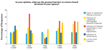 “The good news is that science isn’t being compromised throughout the entire administration,” said Carter. “Agencies such as the FDA and CDC stand out compared to other agencies we surveyed because scientists there said that their leadership respects their work and includes them in the policymaking process.”