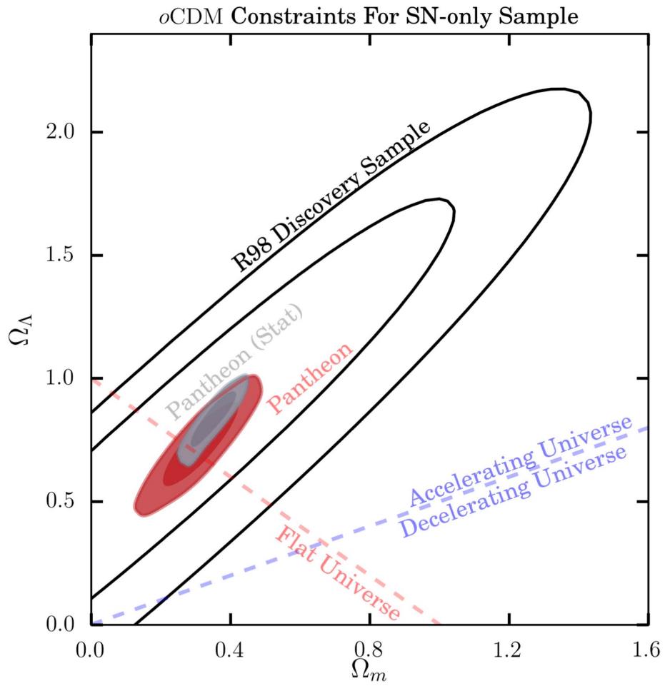 ES: The other was that, using distant type Ia supernovae, we were able to determine that the rate of expansion wasn’t continuing to slow down as though the Universe were made exclusively of matter and radiation, but that the expansion itself was accelerating, indicating the presence of a new species of energy in the cosmos: dark energy. I know that it took many years of accumulating data points before your team drew the conclusion that there was a new species of energy present. What was it like behind-the-scenes when you realized that this data couldn’t be reconciled with a matter-and-radiation-only Universe?