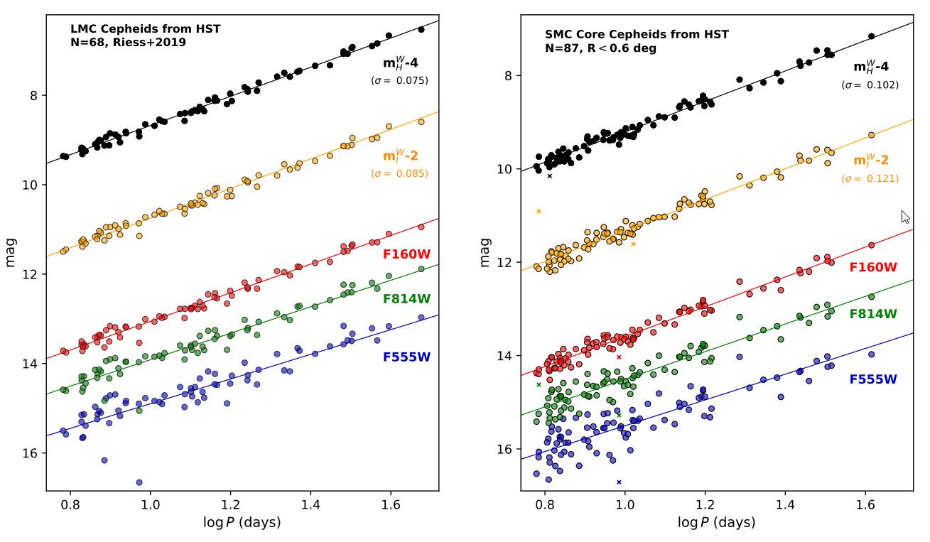 AR: The great breakthrough by Henrietta Leavitt a century ago was to recognize that the period of variation of Cepheid brightnesses tightly correlated with their luminosities. So when we see a bright, yellow star change brightness regularly over weeks or months, we automatically know it’s a Cepheid star and we know its luminosity to about 3% per star (as demonstrated in the Milky Way or Magellanic Clouds). This takes many observations over time, but the reward is to know the precise type of star and it’s luminosity you are looking at which makes them great standardized candles.