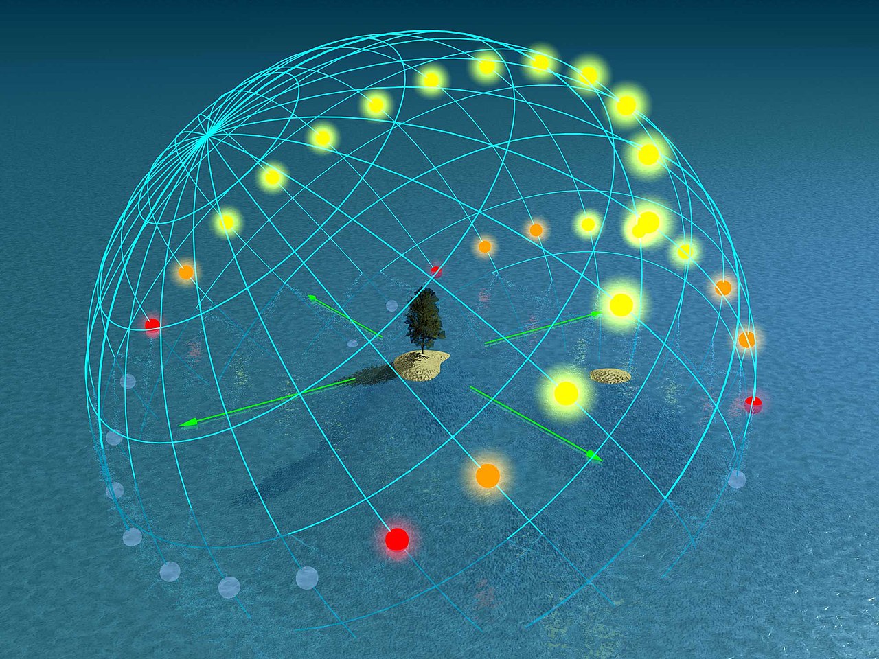 1.) Solstice literally means “Sun stands still” in Latin. If you were to trace out the path of the Sun in the sky throughout the year, such as with a pinhole camera (as shown above), you’d find that the Sun follows a set of paths that all correspond to it rising somewhere in the east/northeast/southeast, reaching a maximum height overhead, and setting somewhere in the west/northwest/southwest.