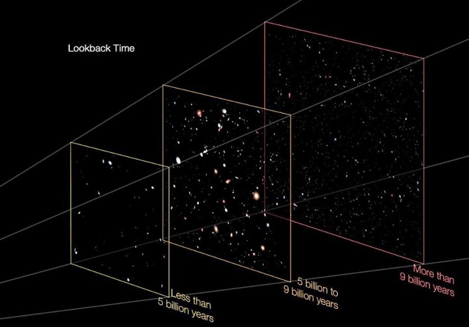 Our home galaxy currently extends a little over 100,000 light-years in diameter, and it contains roughly ~400 billion stars, as well as copious amounts of gas, dust, and dark matter, with a wide variety of stellar populations: old and young, red and blue, low-mass and high-mass, and containing both small and large fractions of heavy elements. Beyond that, we have perhaps 60 other galaxies within the Local Group (within about ~3 million light-years), and somewhere around 2 trillion galaxies littered throughout the visible universe. By looking at objects farther away in space, we’re actually measuring them over cosmic time, which enables us to reconstruct the history of the universe.