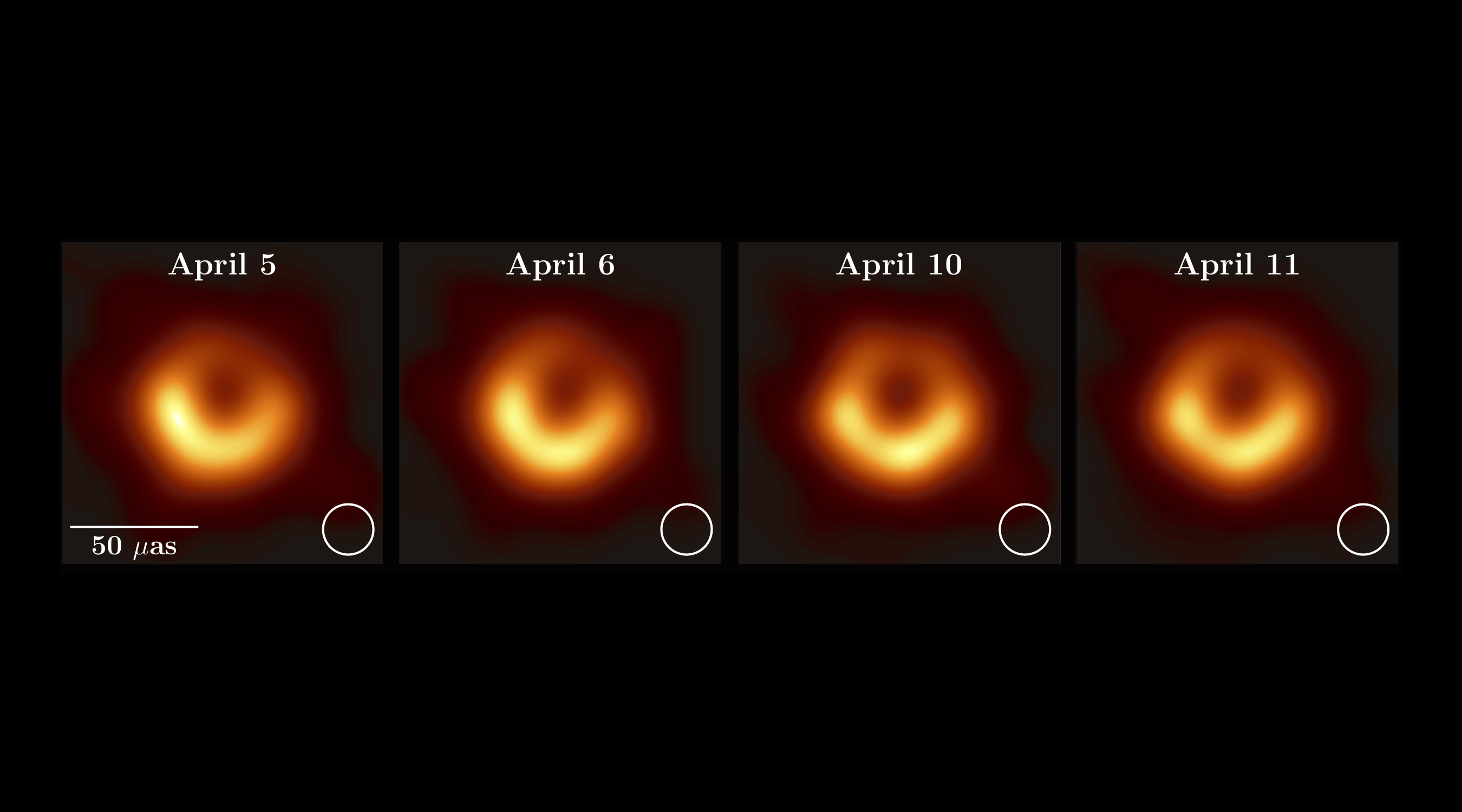 The reason the black hole ring isn’t uniform is easy enough to understand for reasons we’ve already touched on: the matter around the black hole, responsible for the emission of radiation, isn’t distributed uniformly, and it’s also not in uniform, random motion around the black hole. Instead, this asymmetrically-distributed matter has a preferred direction to its motion along with a set of flows accompanying it. As a result, the “ring” we see has “bright spots” and “faint spots,” and the overall brightness as well as the brightness of the individual bright and faint spots varies over time.