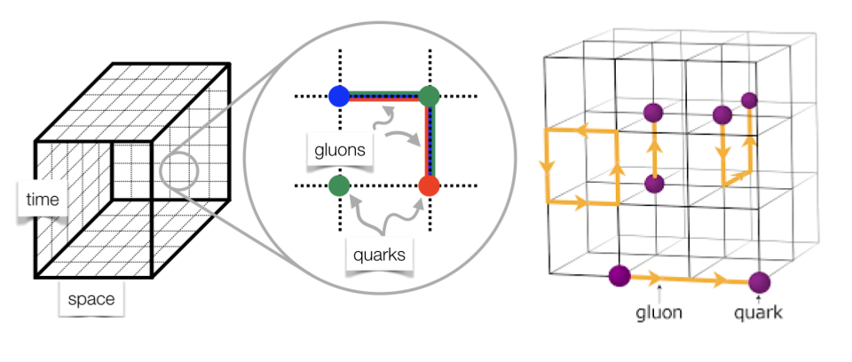 Instead of using experimental inputs, one can actually try to calculate, directly, the contribution of the particles and fields from the strong force to the muon’s magnetic moment. We can’t do these calculations by writing down diagrams and calculating them to higher and higher precisions (and with greater numbers of loops in them), as that method only works for perturbative theories. However, there is a non-perturbative approach: lattice QCD. It’s called lattice QCD because it’s a gauge theory formulated on a grid (lattice) of points in space and time. If you could both: