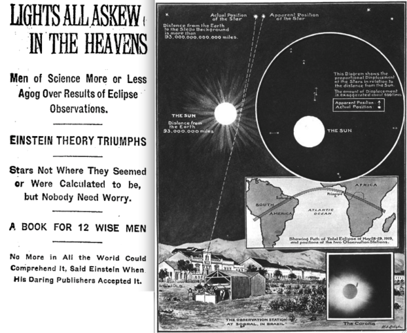 Image credit: Chabot Space & Science Center of the 1900 eclipse, via http://science.kqed.org/quest/2011/10/21/seeing-relativity-no-bungees-attached/.