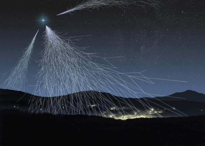 While cosmic ray showers are common from high-energy particles, it’s mostly the muons which make it down to Earth’s surface, where they are detectable with the right setup. Image credit: Alberto Izquierdo; courtesy of Francisco Barradas Solas.