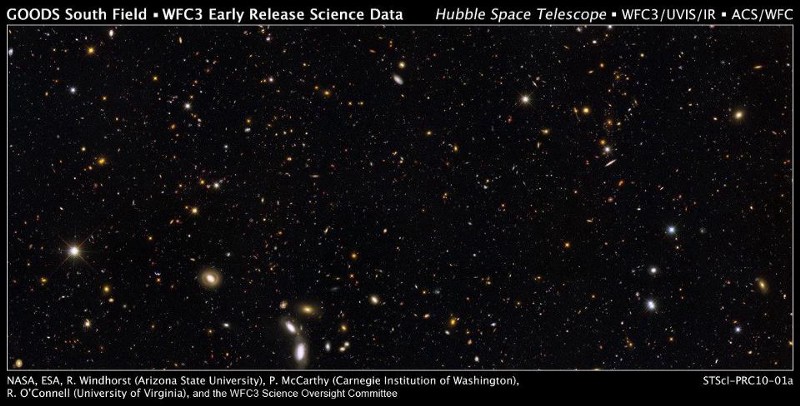 Galaxies from the present day to when the Universe was just 5% of its current age are all visible together in this stunning view of the Universe. Image credit: NASA, ESA, R. Windhorst, S. Cohen, M. Mechtley, and M. Rutkowski (Arizona State University, Tempe), R. O’Connell (University of Virginia), P. McCarthy (Carnegie Observatories), N. Hathi (University of California, Riverside), R. Ryan (University of California, Davis), H. Yan (Ohio State University), and A. Koekemoer (Space Telescope Science Institute).