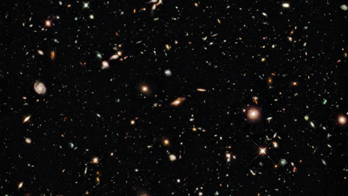 Every “point” in the image above is a galaxy unto itself. The green filament you see is a feature known as the Sloan Great Wall, and is located approximately a billion light years from Earth. The galaxies we’re seeing in that structure are only approximately 12.8 billion years old, and the farthest galaxies seen in the image above are even younger than that.