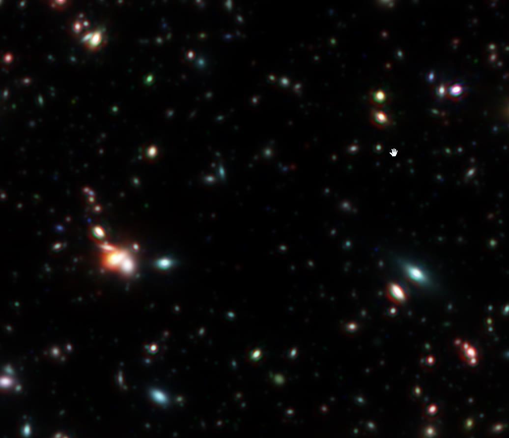This view of a portion of the DREaM simulated galaxy catalog provides a snippet of sky that might correspond, statistically, with what James Webb expects to see. This particular snippet showcases a rich foreground cluster with a variety of background objects of interest. (Credit: Nicole Drakos, Bruno Villasenor, Brant Robertson, Ryan Hausen, Mark Dickinson, Henry Ferguson, Steven Furlanetto, Jenny Greene, Piero Madau, Alice Shapley, Daniel Stark, Risa Wechsler)