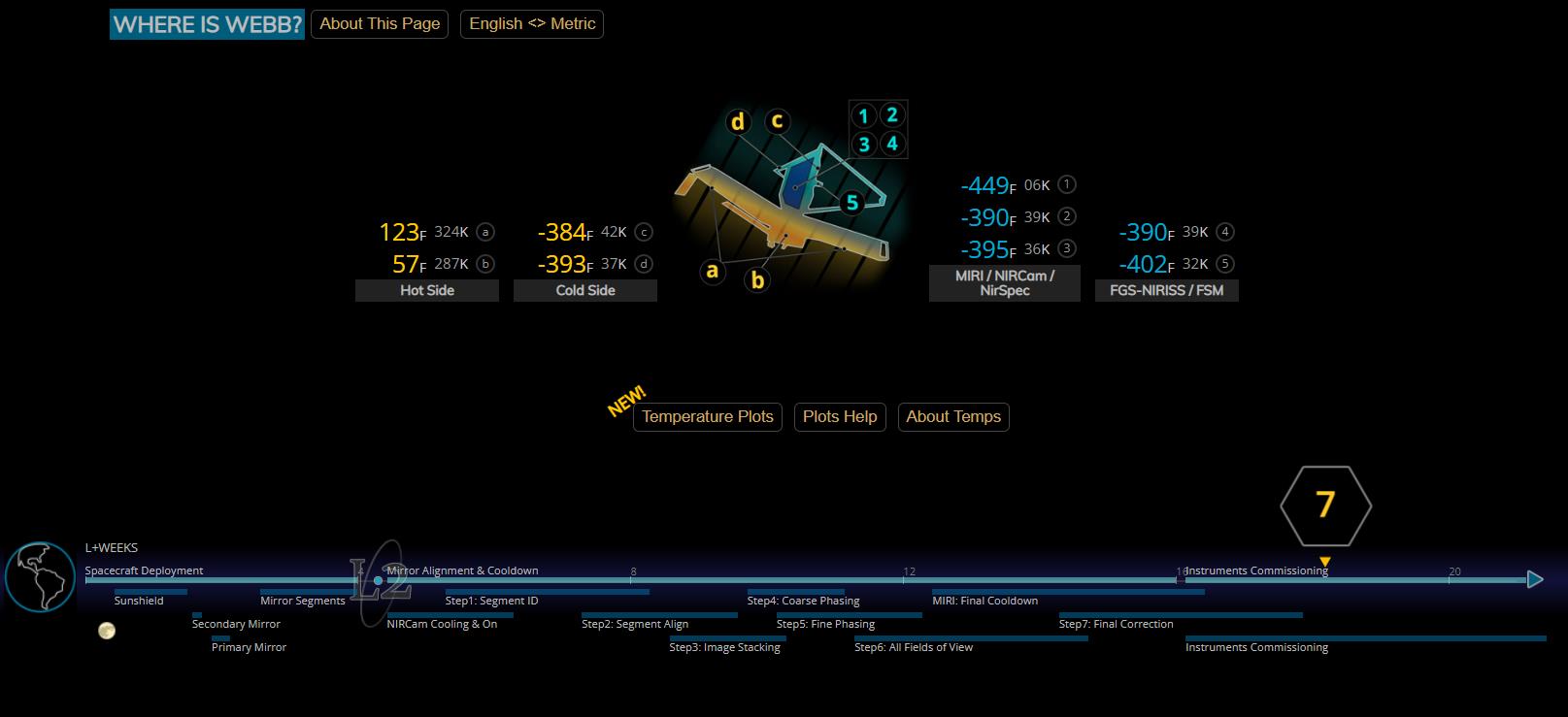 The current status of the JWST shows how far along it is in each of its deployment steps, including the calibration of various components and the temperature of each instrument. Science operations are nearly ready to commence.