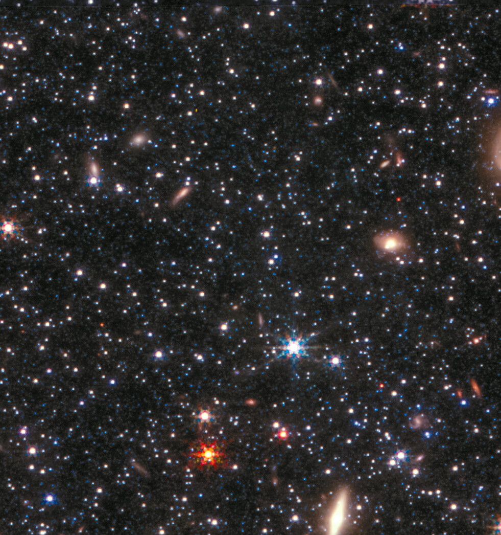 This image, perhaps surprisingly, showcases stars in the Andromeda Galaxy’s halo. The bright star with diffraction spikes is from within our Milky Way, while the individual points of light seen are mostly stars in our neighboring galaxy: Andromeda. Beyond that, however, a wide variety of faint smudges, galaxies in their own right, lie beyond. Individual stars can be resolved in galaxies up to tens of millions of light-years away, but that represents only one-in-a-billion galaxies overall. This image showcases both the power and limitations of Hubble.