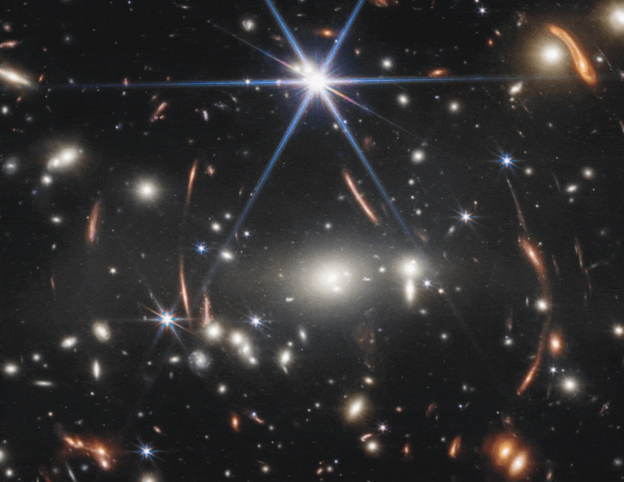 This almost-perfectly-aligned image composite shows the first JWST deep field’s view of the core of cluster SMACS 0723 and contrasts it with the older Hubble view. The JWST image of galaxy cluster SMACS 0723 is the first full-color, multiwavelength science image taken by the JWST. It was, for a time, the deepest image ever taken of the ultra-distant Universe, with 87 ultra-distant galaxy candidates identified within it. They await spectroscopic follow-up and confirmation to determine how distant they truly are.
