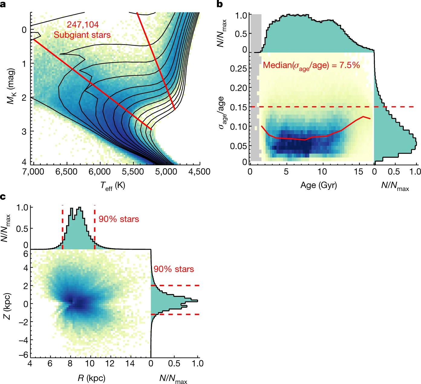 But thanks to the spectacular data from Gaia, there were 247,104 subgiant stars mapped, with precisely-determined ages, in our Milky Way to examine.