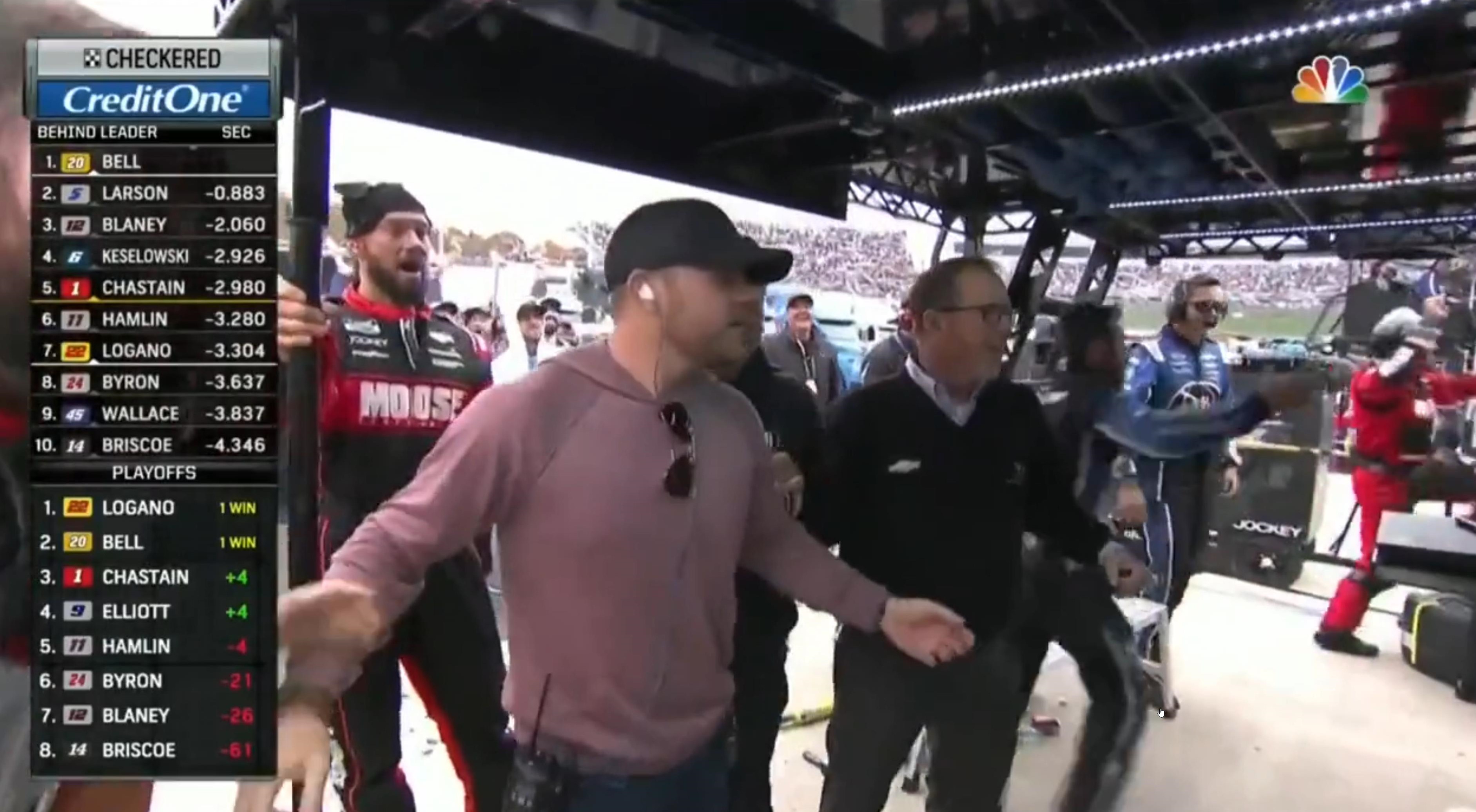 Even with the additional distance of having to travel through the outside portion of the turn, Chastain was able to overtake five other drivers with this maneuver, catapulting him from 10th place to 5th place, knocking rival Denny Hamlin down to 6th. As a result of his wall-assisted final turn, Chastain finished six points ahead of Hamlin, enabling him to join Bell, Logano, and Elliott as the final qualifiers for the NASCAR Championship.