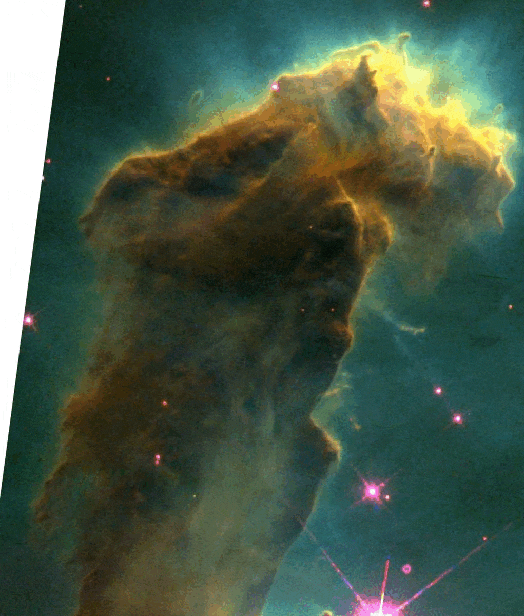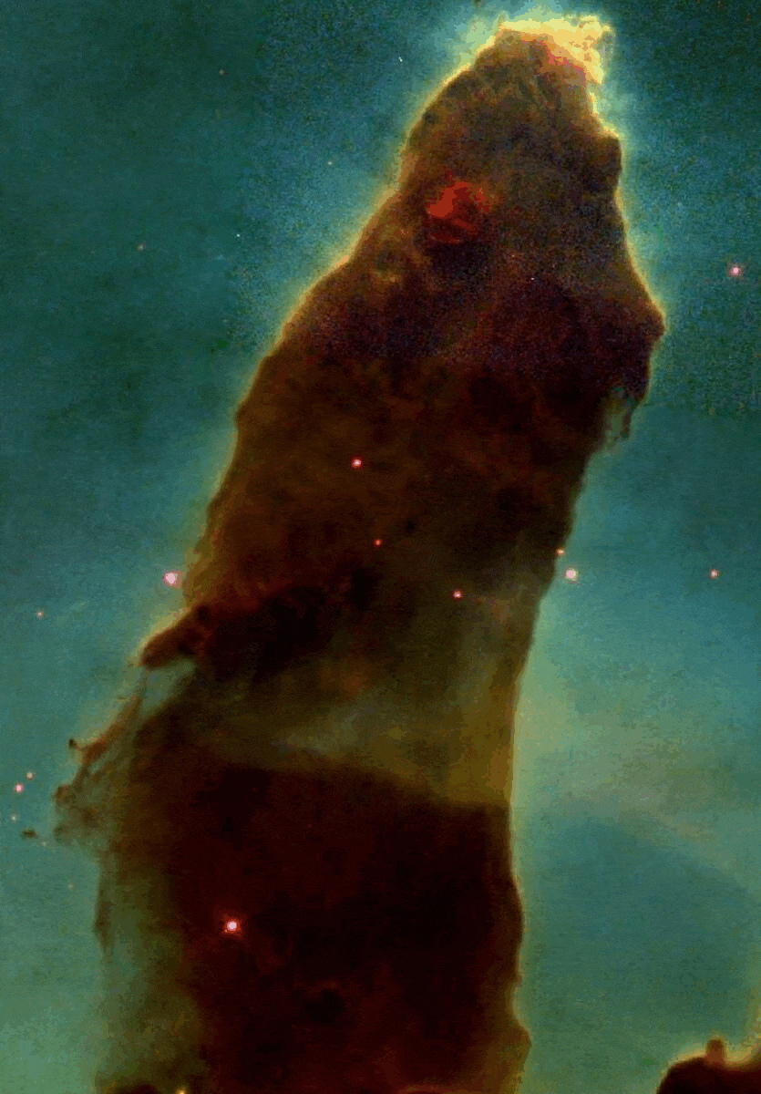 The dusty pillars, which appeared so solid in the Hubble imagery, now appear more as they actually are: as evaporating globules of neutral matter, being boiled away not primarily from the inside, but from external radiation arising from bright blue stars well outside of the pillars themselves. A few stars are indeed forming within these pillars, but for the most part, the rate of cooling and collapse is too slow to lead to many more new ones. Aside from a few protostars already identified inside, it’s likely that the star-formation that will occur within the pillars is almost already complete.