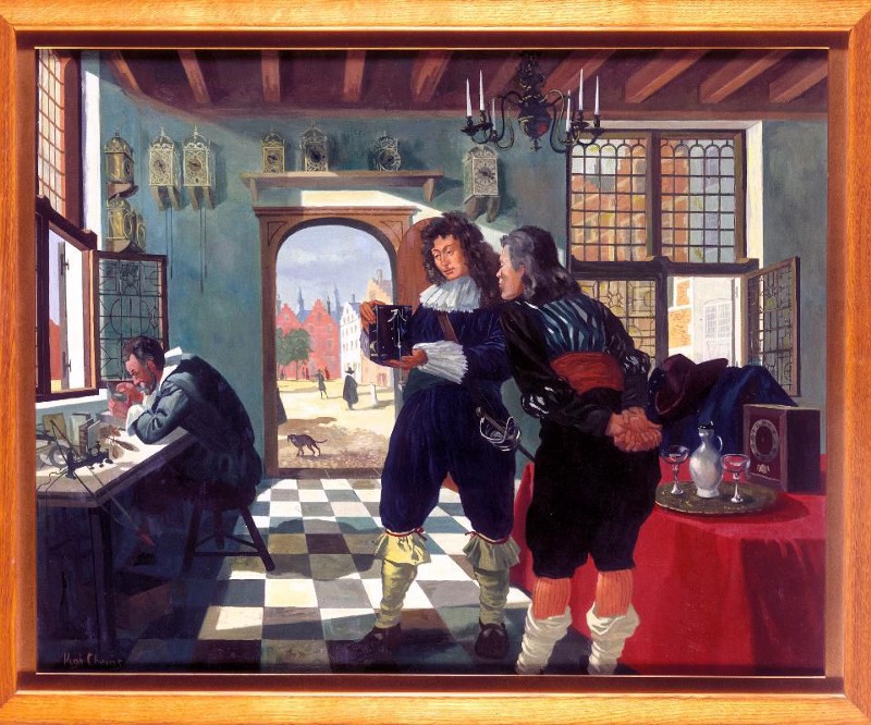 The most renowned clockmakers of the 17th century were Dutch, led by the great physicist Christiaan Huygens. Huygens made tremendous advances in the science of wave mechanics, optics, physics (discovering centripetal force), and astronomy (including investigating Saturn’s rings and discovering its giant moon, Titan). In 1656, however, he made his greatest contribution as a scientist and inventor: the pendulum clock.