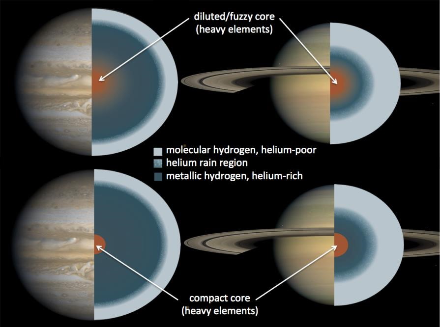 Deep within a giant world like Saturn and Jupiter, and far more common around worlds where the temperatures are lower, the high pressures can transform both hydrogen and helium into the liquid phase. These liquids, due to the vast difference in electronegativities and polarizabilities of these atoms/molecules, will separate much like oil and water do here on Earth, which can cause the helium to precipitate out and sink further. It’s thought that this process can lead to liquid helium rain in the interior of giant planets, and this might be more common the cooler and more massive the planet in question is.