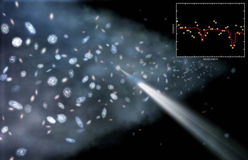 The light from ultra-distant quasars provide cosmic laboratories for measuring not only the gas clouds they encounter along the way, but for the intergalactic medium that contains warm-and-hot plasmas outside of clusters, galaxies, and filaments. The X-ray emission from quasars enabled this newest detection by XMM-Newton. (Ed Janssen, ESO)