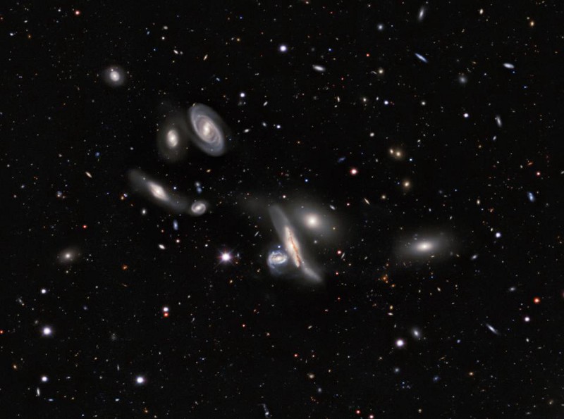 Over time, the imperfections that correspond to overdense regions must have grown, preferentially attracting more and more matter to them, while the average and underdense regions give up their matter to the denser locations. After enough time has passed, the overdense regions become massive and dense enough that they can undergo gravitational collapse, leading to star-formation, star clusters, and eventually, after enough growth and/or mergers have taken place, the first galaxies. As time goes on, these galaxies grow and merge further, evolving into the modern-day ones we see at present.