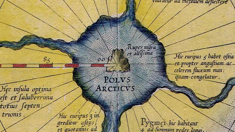 Mercator’s authoritative (but wrong) depiction of the North Pole persisted well into the 17th century, only to be dispelled gradually by real discoveries.