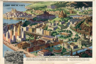 Mid-20th century British illustrator Ronald Lampitt had a predilection for maps. It probably was no coincidence that he got to draw, in the Illustrated Magazine of 17 February 1951, the proposal of John Sleigh Pudney for an ideal city.