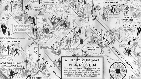 It’s the 1930s, and while elsewhere in the world evil people are poring over maps with plans for plunder and dreams of conquest, cartography is serving a more benign purpose in Harlem, New York City. This Night-Club Map of Harlem is a chart of the fun to be had in the cultural capital of black America, circa 1932.