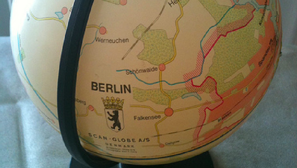 I found this this remarkable cartifact in an antique shop in Aberdeen, WA – a rather unlikely location for German-themed paraphernalia (3). As attested by its legend, it was designed by cartographer Karl-F. Harig for Scan-Globe A/S of Denmark, who produced it in 1993. Planet Berlin does not reveal anything about why it was made, and what exactly it represents. But one can guess.