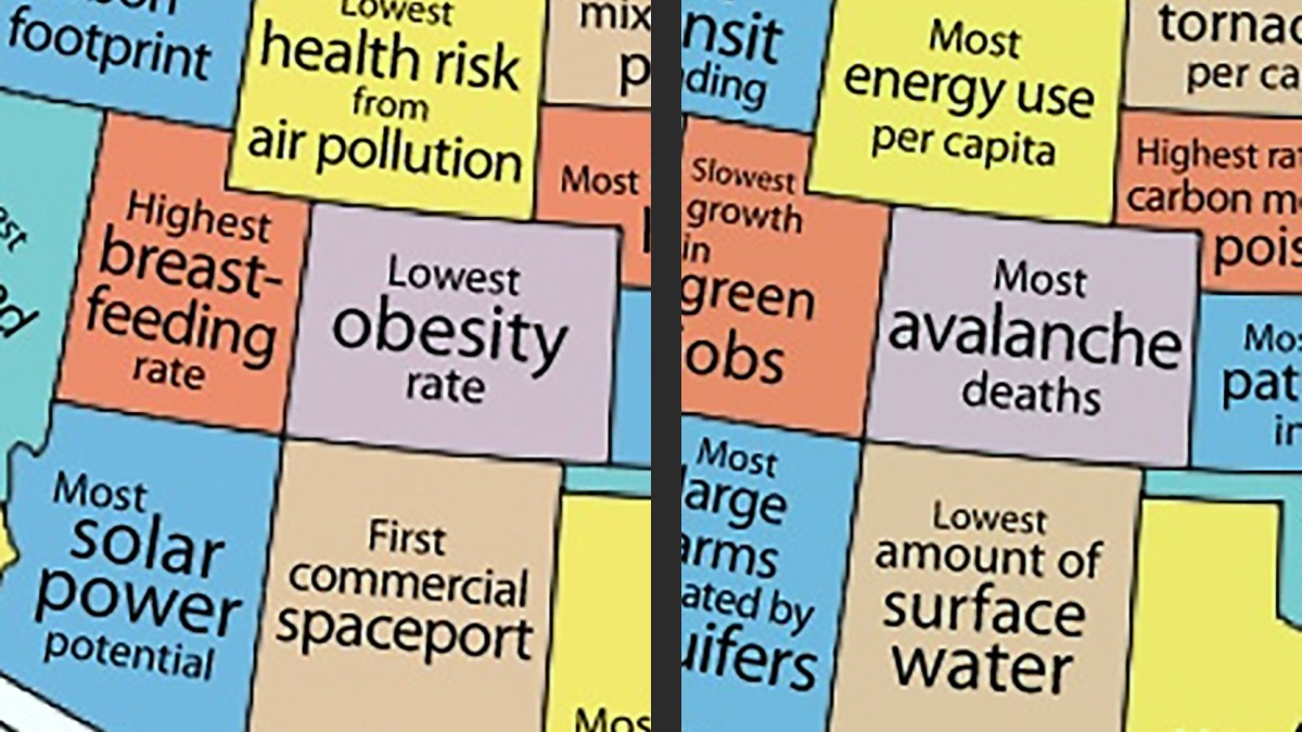Juxtaposing each state’s best and worst leads to interesting statistical pairings. But with data as haphazardly corralled together as this, causal linkage should be avoided. Otherwise it could be concluded that: