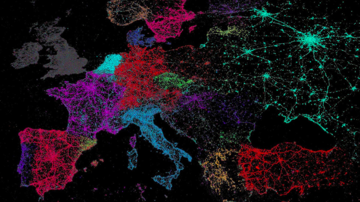 What a joy these maps are to behold. It’s as if someone took one of those composite satellite maps – you know, impossibly showing the whole world at night, the darkness broken by hubs and strings of artificial light (1) – and gave it the power of speech.