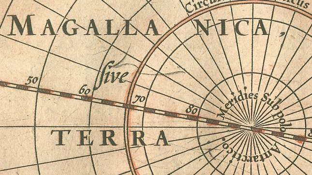 The continent is labelled Magallanica, sive Terra Australis Incognita: ‘Magellan’s Land, a.k.a. the Unknown Southern Land’. The name of the Portuguese explorer [3] was attached to the hypothetical continent because he supposedly skirted it in 1519, but the putative existence of a large mass of land in the southern hemisphere had already been posited by Aristotle (4th century BC) and elaborated by Ptolemy (1st century AD).