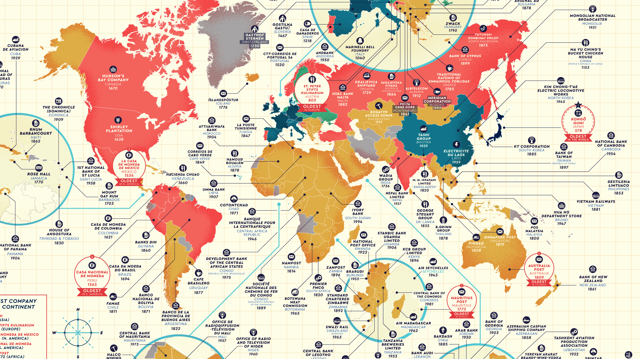 Maps show the oldest company in (nearly) every country – and a few interesting corporate trends.