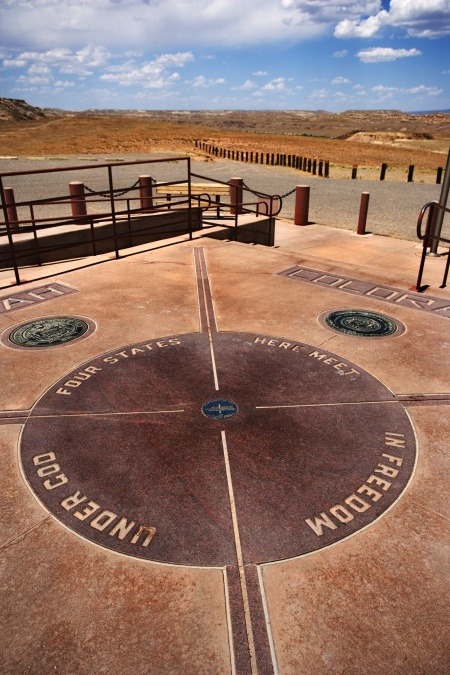 Located in a dusty, desolate corner of the desert, the Four Corners monument seems very far from the middle of anything. Yet this is the meeting point of four states: Utah, Colorado, New Mexico and Arizona. It is the only quadripoint in the United States (4). The monument’s exact location is at 36°59’56″N, 109°02’43″W.