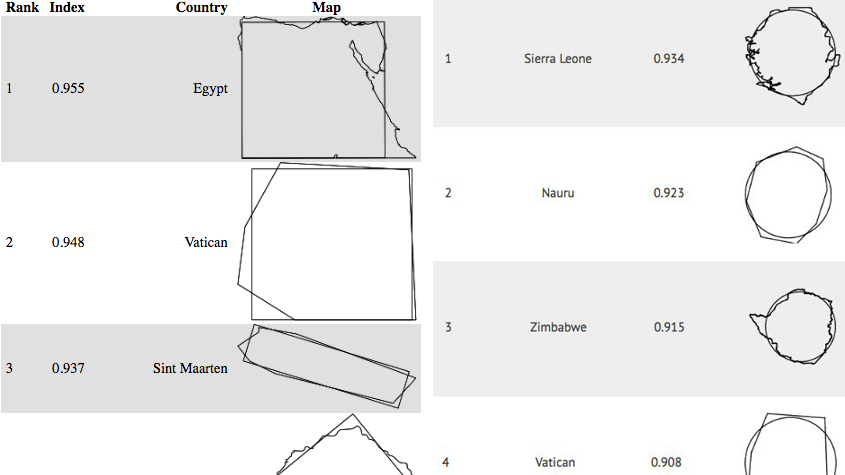 As it turns out, Lesotho is only the 36th roundest out of a total of 206 countries and territories, and Turkey only the 15th boxiest. So we were off by quite a bit. But ask us which is the most triangular nation on earth, and we can’t even picture a likely candidate.