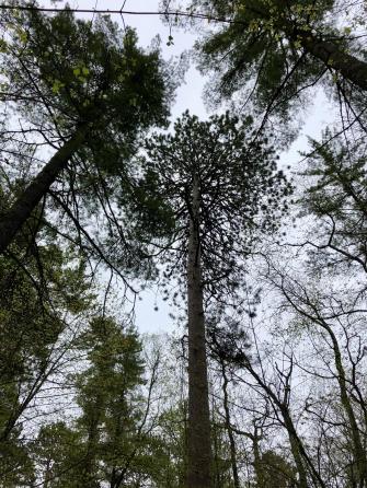 The oldest pine trees in the Lost Forty are between 300 and 400 years old, close to their maximum natural life span, which is up to 500 years. Similar pines in other parts of the National Forest are harvested at between 80 and 150 years for pulp and lumber. As a result, the pines in the Lost Forty are not only higher than most of the surrounding woods but also bigger with a diameter of between 22 and 48 inches (55 to 122 cm). One of the biggest has a circumference of 115 inches (2.9 m).