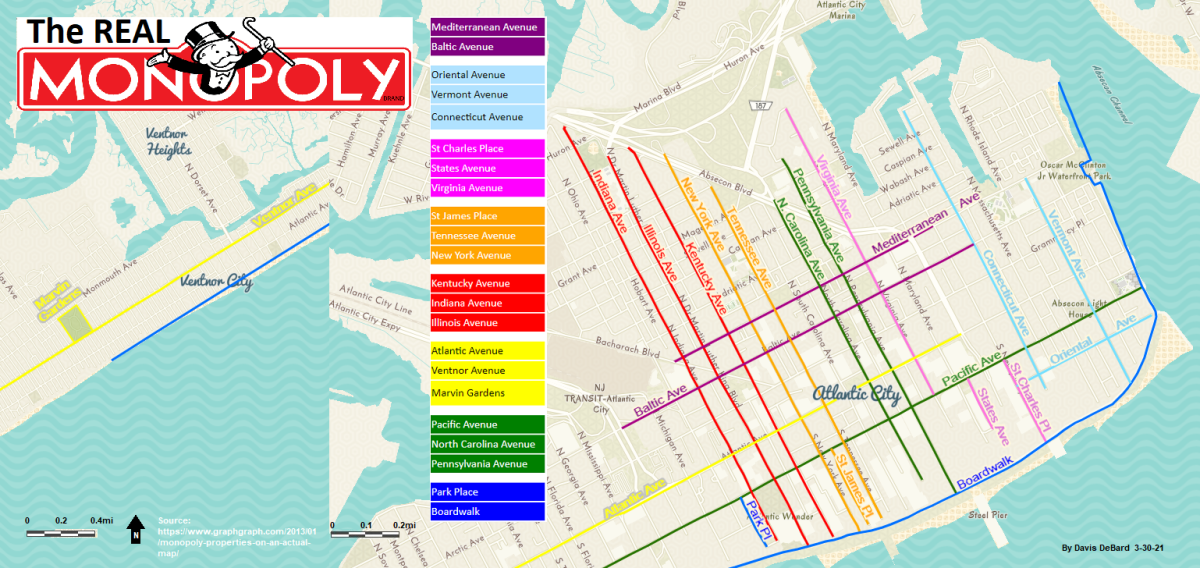 For more on the intersection of Monopoly, Atlantic City geography and 1930s segregation, read this article in The Atlantic by Mary Pilon. She is also the author of a book on the subject, called The Monopolists.