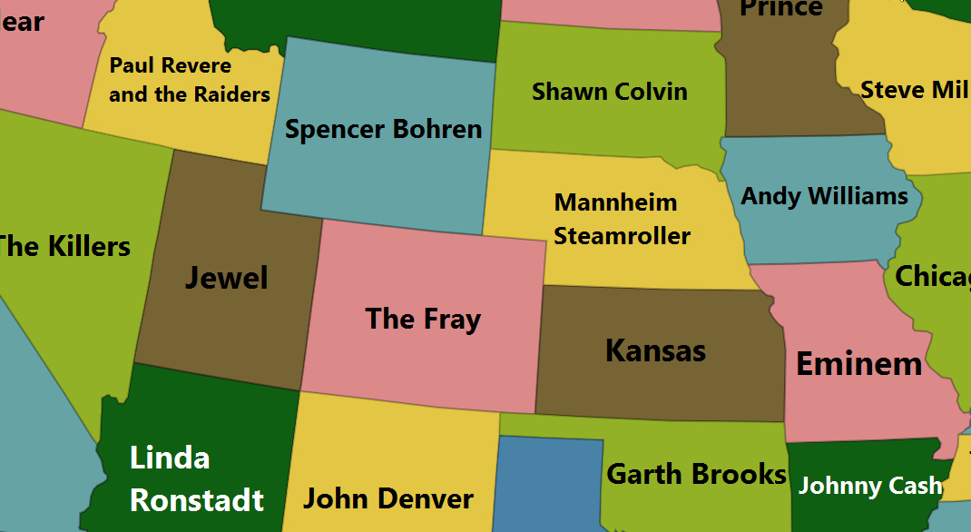 This is a map of the best-selling artists in each state, it says. And then to clear up the ambiguity, it adds: FROM not IN each state.