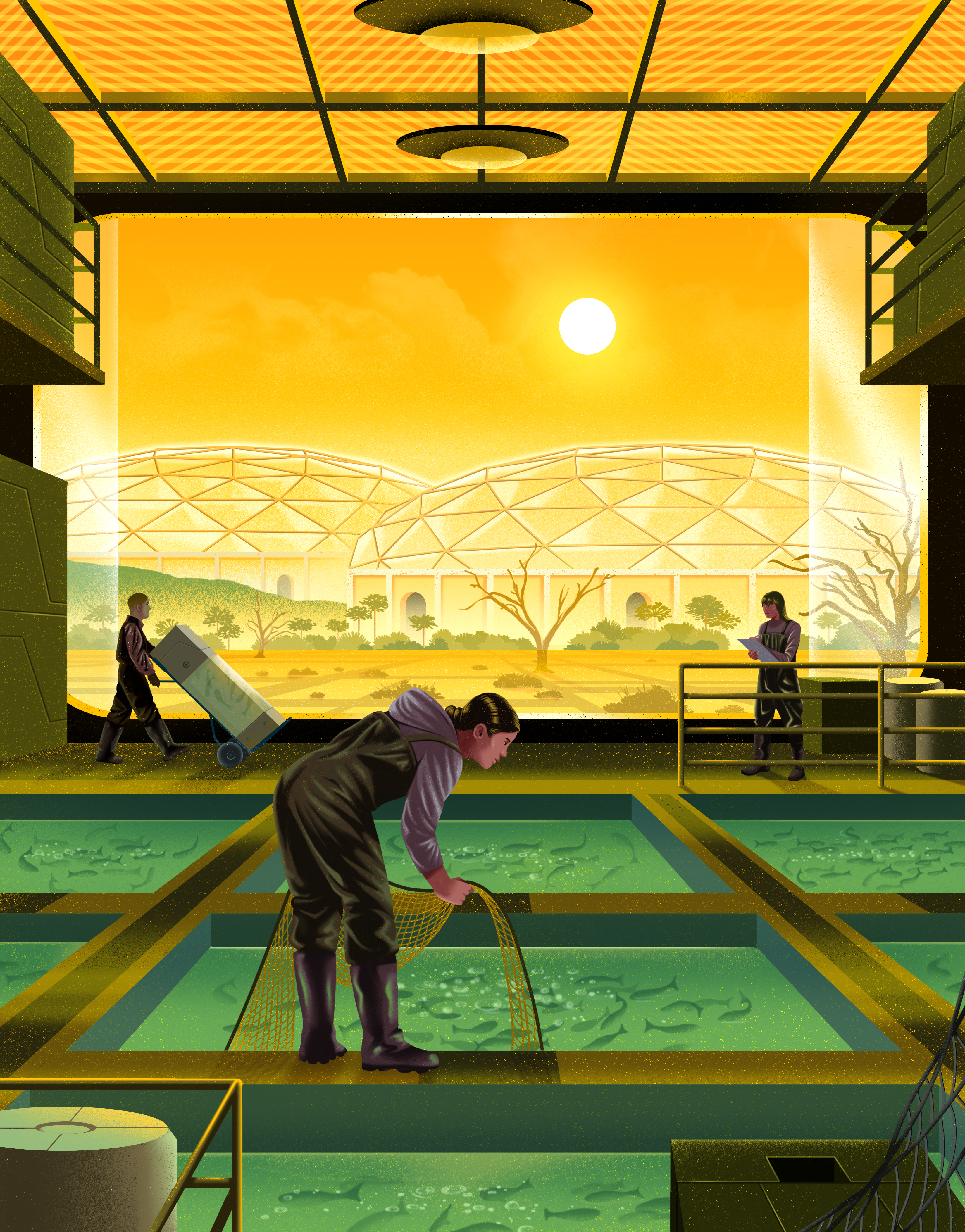 Assuming the area is not abandoned entirely, adaptation would resemble a terraforming project on Mars: polycarbonate domes on an industrial scale. UV-B stunts photosynthesis and kills useful bacteria in the soil, so Chile’s famous wine industry and Argentina’s proud cattle-raising tradition continue indoors, under UV-filtering plastic. UV-sensitive staples like potatoes and grapes give way to hardier crops like quinoa and other Andean grains. As the ocean’s surface is effectively sterile, fisheries pivot to deep-sea species or to land-based aquaculture in shaded tanks.