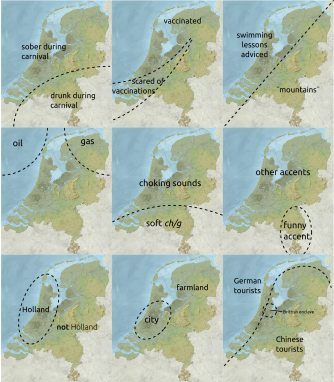 Many thanks to Martin Foldager for sending in this map, found here on Reddit. North Brabant Carnival map found here at Kunst & Co Uden. Measles/voting map found here on Imgur. Map of Dutch oil and gas reserves found here at Natuurinformatie.