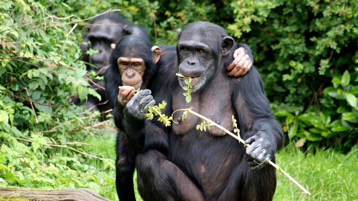 Researchers video chimpanzee mothers teaching their kids how to use tools.
