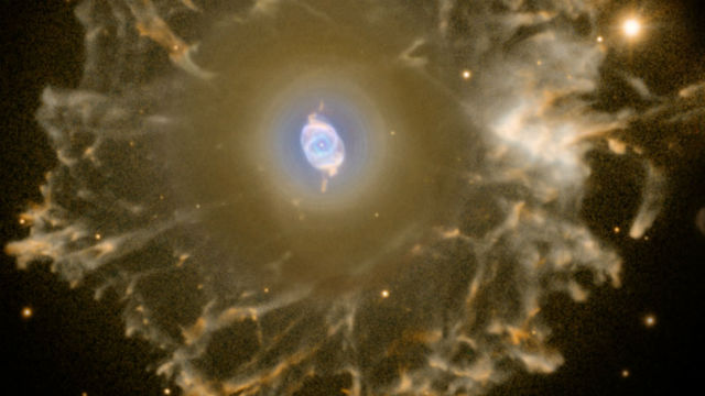 No, this is not a still from David Lynch’s Dune. But it could be! The Cat’s Eye Nebula, or NGC 6543, is one of the better known planetary nebulae for stargazers, according to NASA. But this image is slightly altered: it’s a false-color picture processed to show off the nebula’s gaseous, three-light-years across halo.