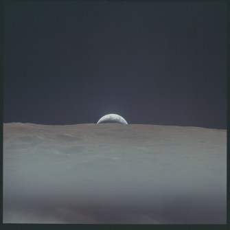 Earth rise over the lunar surface. (NASA/Project Apollo Archive)